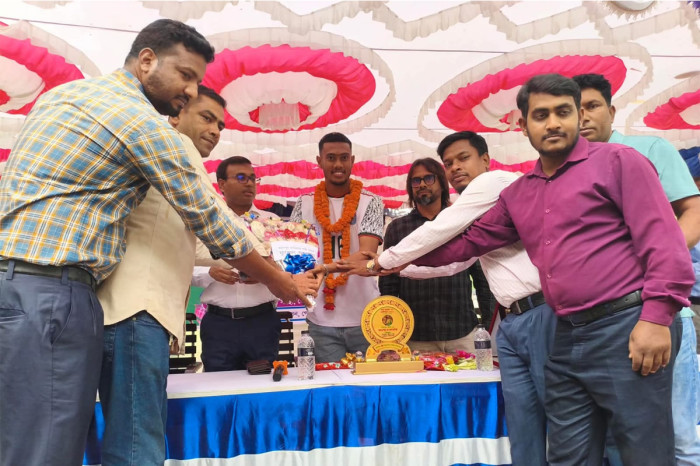 মালদ্বীপে সাফ অনুর্ধ-২০ ফুটবল টুর্নামেন্টে চ্যাম্পিয়ন বাংলাদেশ দলের অন্যতম সদস্য ইউসুফ আলীকে গণসংবর্ধনা দিয়েছে উপজেলা ক্রীড়া সংস্থা।