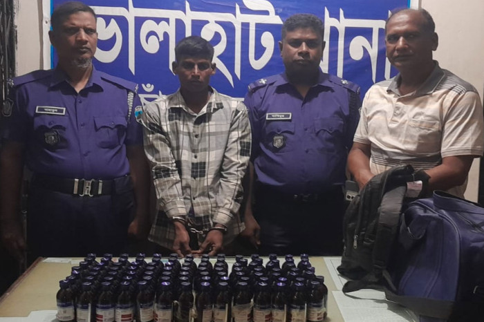 পুলিশ সূত্রে জানা গেছে, ভোলাহাট থানা পুলিশের একটি চৌকস দল তল্লাশি চালিয়ে তার হেফাজত থেকে ৯৮ বোতল আমদানি নিষিদ্ধ ভারতীয় ইসকাপ সিরাপ উদ্ধার করা হয়।