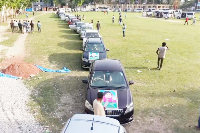রোববার (১২ এপ্রিল) বিকেলে গুরুদাসপুর পাইলট মডেল উচ্চ বিদ্যালয় মাঠ থেকে তার নেতৃত্বে প্রায় অর্ধশত হাইয়েস ও প্রাইভেটকারের একটি বিশাল বহর বের হয়। বহরটি উপজেলার বিভিন্ন গুরুত্বপূর্ণ সড়ক প্রদক্ষিণ করে চাঁচকৈড় বাজারে গিয়ে শেষ হয়। এসময় তার সমর্থকরা স্লোগানের মাধ্যমে নিজেদের অবস্থান জানান দেন।