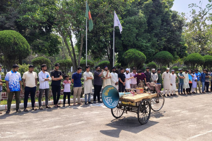 শাখা ছাত্রশিবিরের সেক্রেটারি রাশেদুল ইসলাম রাফি বলেন, “গণভোটে প্রায় ৭০ শতাংশ জনগণ ‘হ্যাঁ’ পক্ষে রায় দিয়েছে। জুলাই আন্দোলনে অংশ নেওয়া মানুষ জীবন-ভবিষ্যতের চিন্তা না করে ফ্যাসিবাদমুক্ত রাষ্ট্র গঠনের লক্ষ্যে রাস্তায় নেমেছিল। সংখ্যাগরিষ্ঠতা নিয়ে সরকার গঠন করার পর সরকারি দল এখন বায়াত্তরের সংবিধানের দোহাই দিয়ে পিছিয়ে যাচ্ছে। কোন সংবিধান বলে এই ২৪-এর আন্দোলন হয়েছিল? কোন সংবিধান বলে জুলাই-আগস্টের বিপ্লব ঘটেছিল?”