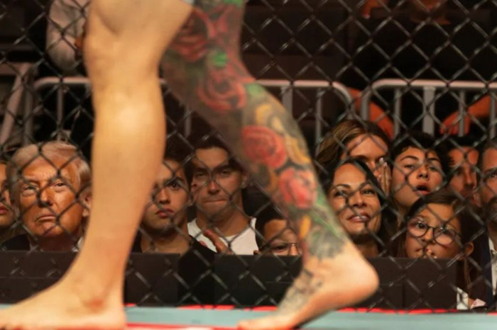ট্রাম্পের পাশে ছিলেন পররাষ্ট্রমন্ত্রী মার্কো রুবিও, তার কয়েক সন্তান, ইউএফসি কর্মকর্তারা, ভারতে মার্কিন রাষ্ট্রদূত সার্জিও গোর, গায়ক ভ্যানিলা আইস এবং পডকাস্টার জো রোগান।