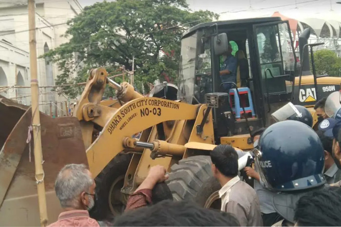 রাজধানীর বায়তুল মোকাররম মার্কেটের দক্ষিণ পাশে জিপিও লিংক রোডের দুই পাশের ফুটপাত থেকে অবৈধ দোকান উচ্ছেদে অভিযান শুরু করেছে ঢাকা দক্ষিণ সিটি কর্পোরেশন (ডিএসসিসি)। ভ্রাম্যমাণ আদালতের মাধ্যমে গড়ে ওঠা অস্থায়ী দোকানগুলো গুঁড়িয়ে দেওয়া হচ্ছে।