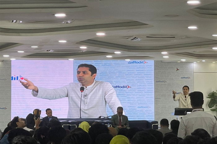 অনুষ্ঠানে সভাপতিত্ব করেন ড্যাফোডিল ইন্টারন্যাশনাল ইউনিভার্সিটির বোর্ড অব ট্রাস্টিজের চেয়ারম্যান ড. মো. সাবুর খান। তিনি বলেন, বর্তমান সময়ে শুধু প্রাতিষ্ঠানিক শিক্ষা নয়, বরং বাস্তবমুখী দক্ষতা অর্জনই শিক্ষার্থীদের ভবিষ্যৎ গঠনে গুরুত্বপূর্ণ ভূমিকা রাখছে।